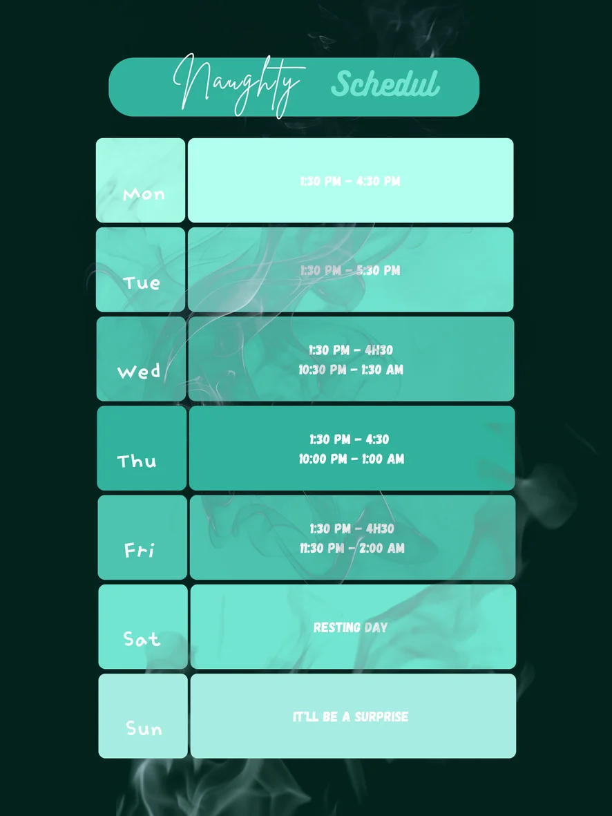 ⚠️ Subject to change: If my body needs rest, I’ll take it. Times may shift by ~30 mins earlier/later.⏳ depending on what life gives me. 😬 If I'm late or can’t make it, I’ll try my best to give you a heads up. 🫡